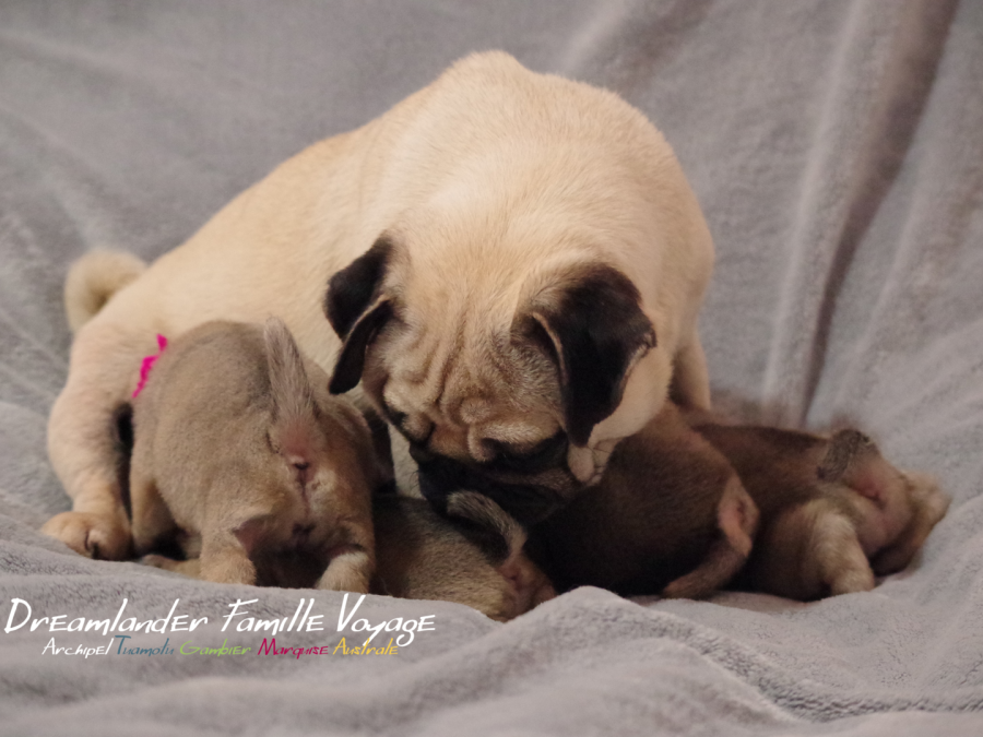 La santé des parents est un gage pour celles des chiots ainsi nous y apportons beaucoup d'attention. Pour les carlins, je fais faire le dépistage de la luxation des rotules et les tests du DM, PDE et PK. Enfin tous mes compagnons sont identifiés par l'ADN et leur parenté est certifiée à la fois par le LOF et par le génome. Vous l'aurez compris, pour moi élevage carlin rime avec carlin LOF et donc chiots LOF c'est l'unique garantie pure race.