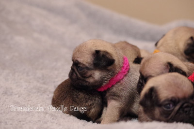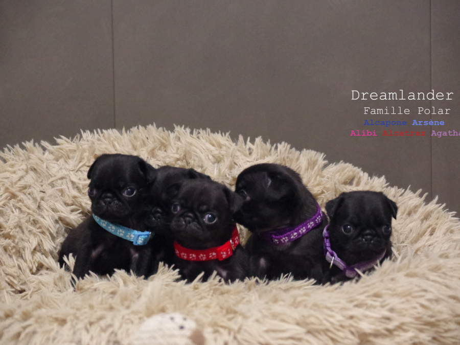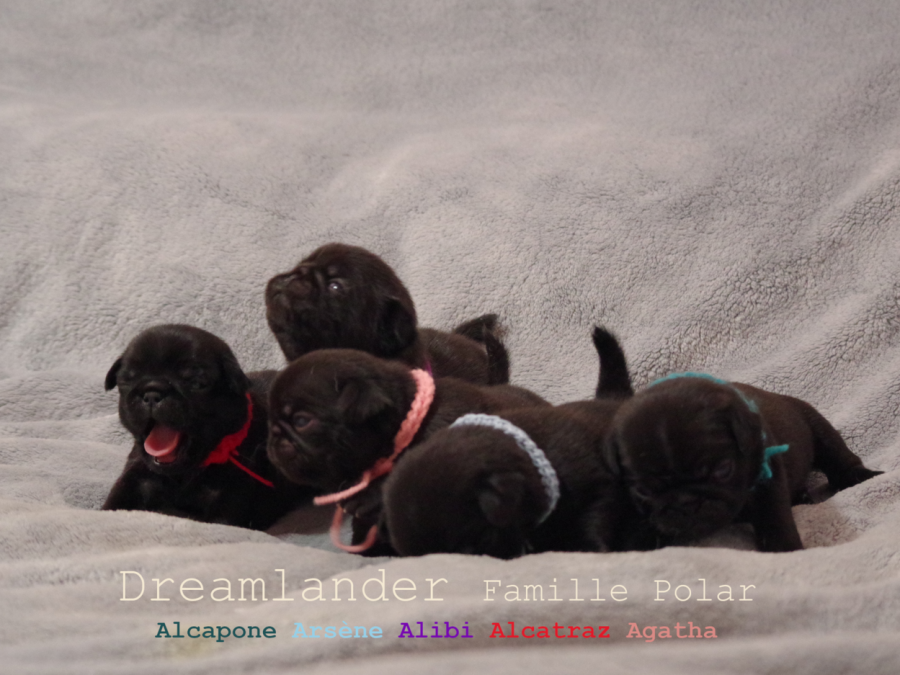 La génétique de mes carlins me permet d'obtenir des chiots lof dans trois couleurs du standard :