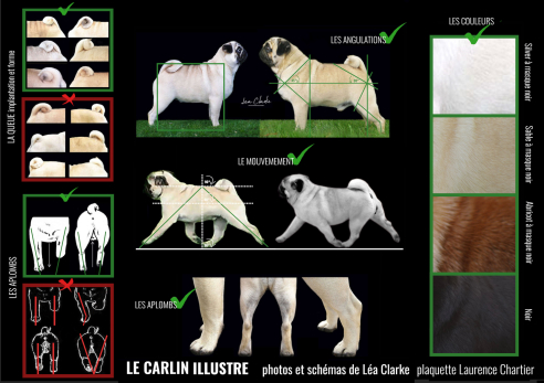 Madame Léa Clarke a réalisé un magnifique travail d’illustration (photos et schémas) ainsi qu’un commentaire poussé sur le carlin. Eleveuse de carlin, sous l’affixe Chopsticks en Nouvelle-Zélande, elle maîtrise son sujet. Pour comprendre la mécanique du carlin, c’est un outil supplémentaire qui fait référence.