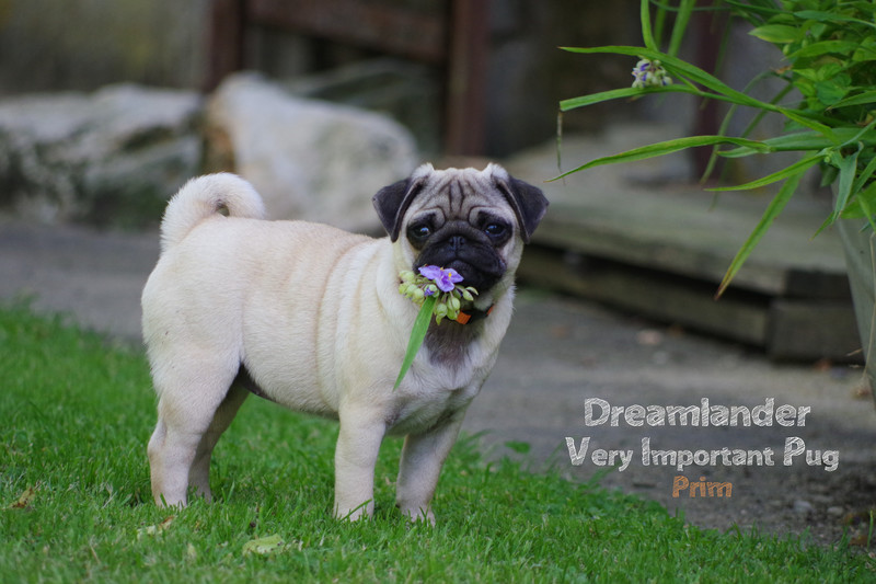 Prim, comme son nom l'indique fait parti des "very important pug", peut être parce que Zulu est dans ses ancêtres, peut-être à cause de son caractère, peut-être suis-je simplement zinzin des carlins !