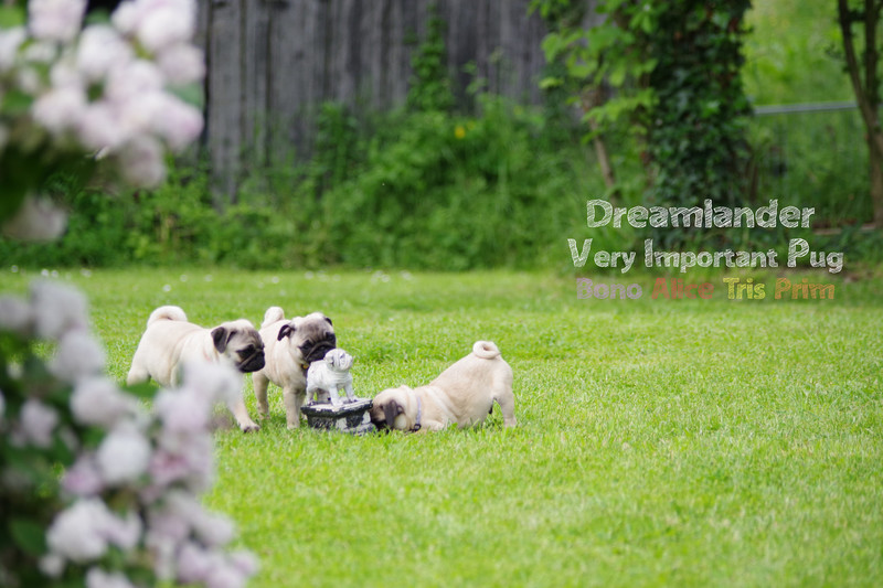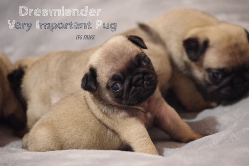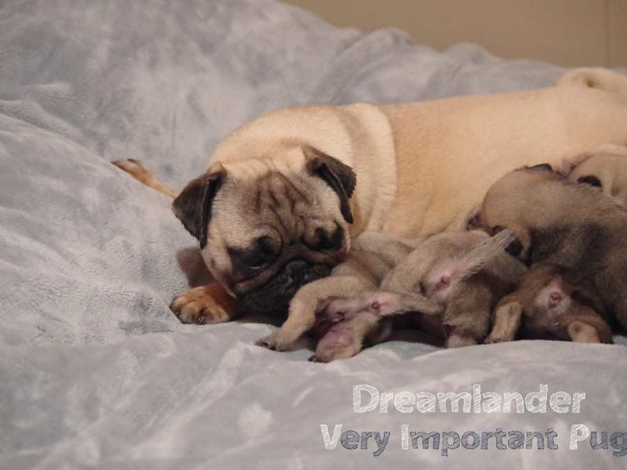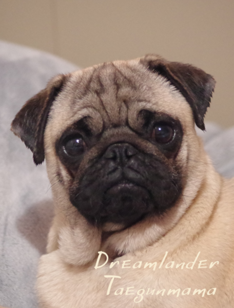 Dreamlander Taegunmama est une femelle carlin sable issue de deux dreamlanders, l'un sable et l'autre noir. De son père elle a hérité du côté anglais et le sable, de sa mère elle a conservé la joie de vivre, la gentillesse et l'origine de son nom. Ensemble, ils lui ont légué des tests parfaits.