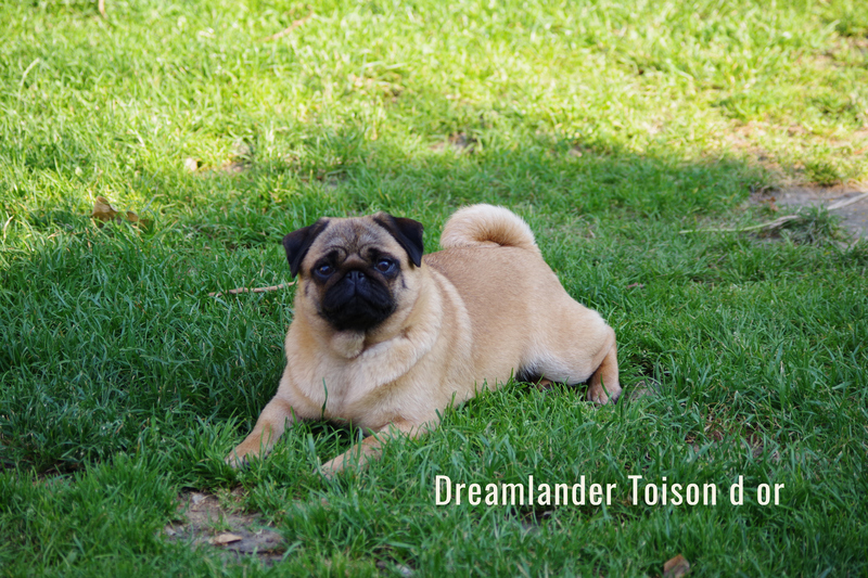 Le voilà le bel abricot intense ! Dorée est la fille d'Olga, du même abricot et elle a hérité de la belle ossature de son père Ice. Dorée est vive, joueuse, bien dans sa robe. J'espère qu'elle aura de beaux chiots carlin abricots pour perpétuer cette sublime et rare Dorée est vive, joueuse, bien dans sa robe